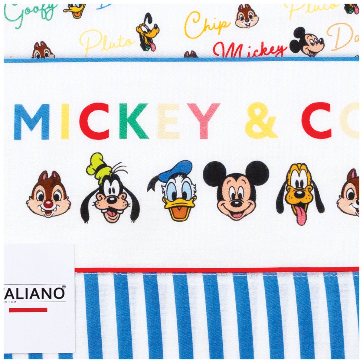 - un lenzuolo piano decorato con una tenera stampa del celebre Topolino e dei suoi amici,