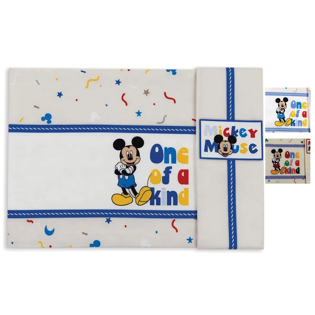 Set lenzuolini culletta Topolino cotone biologico 90x120 cm con federa e angoli elastici