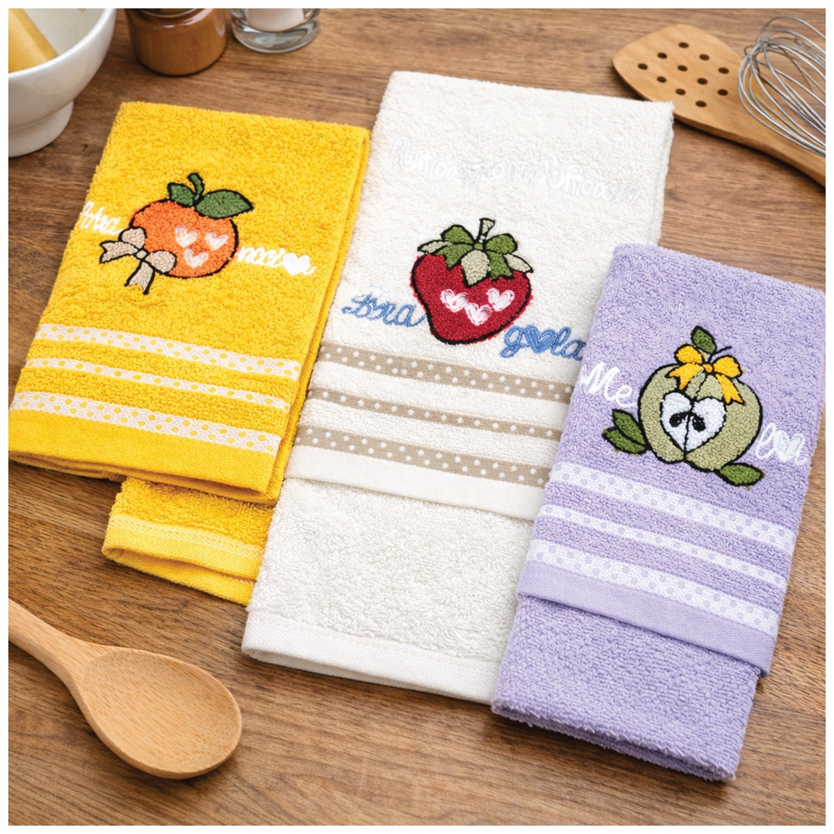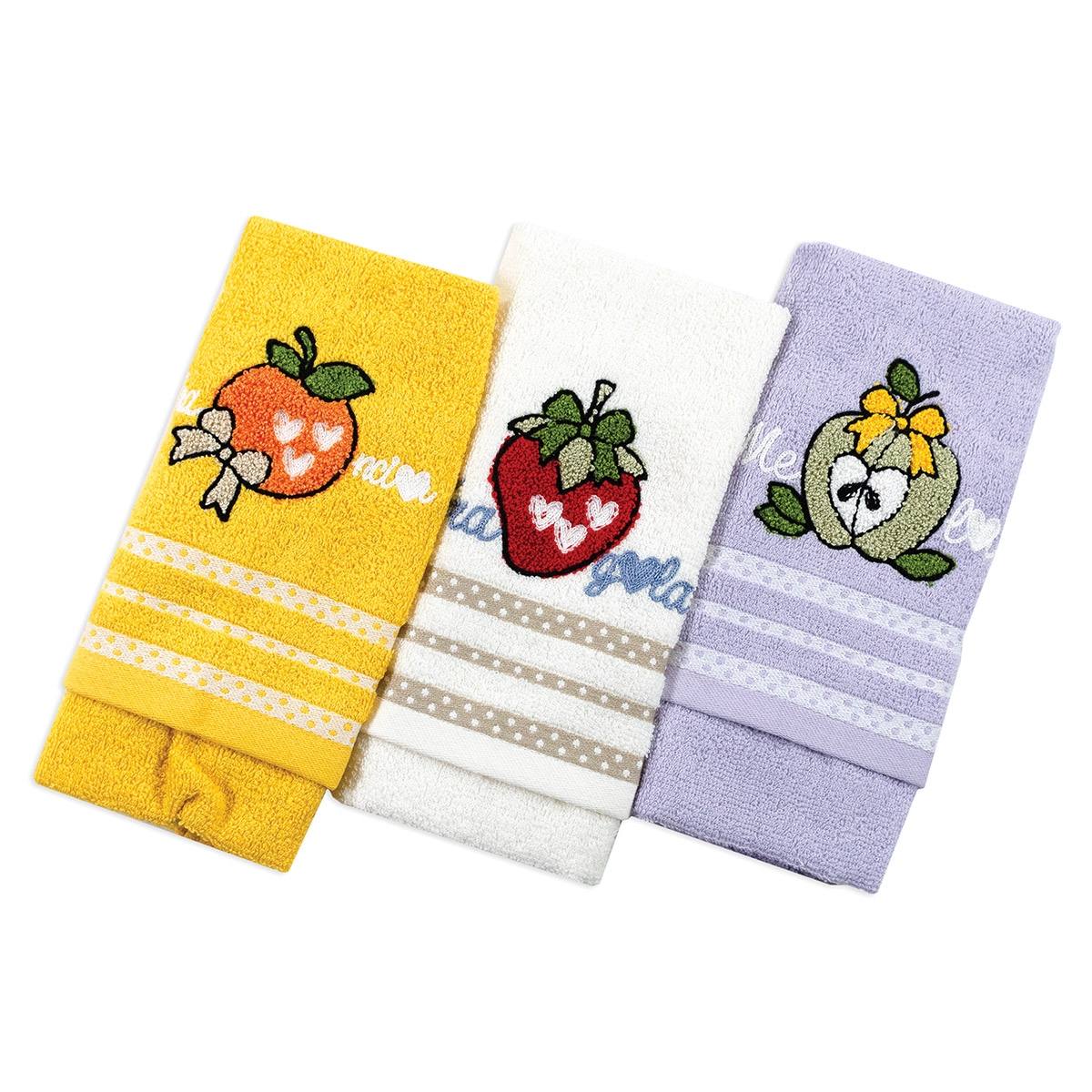 Set 3 strofinacci in spugna ricamati - Macedonia Due - Vingi