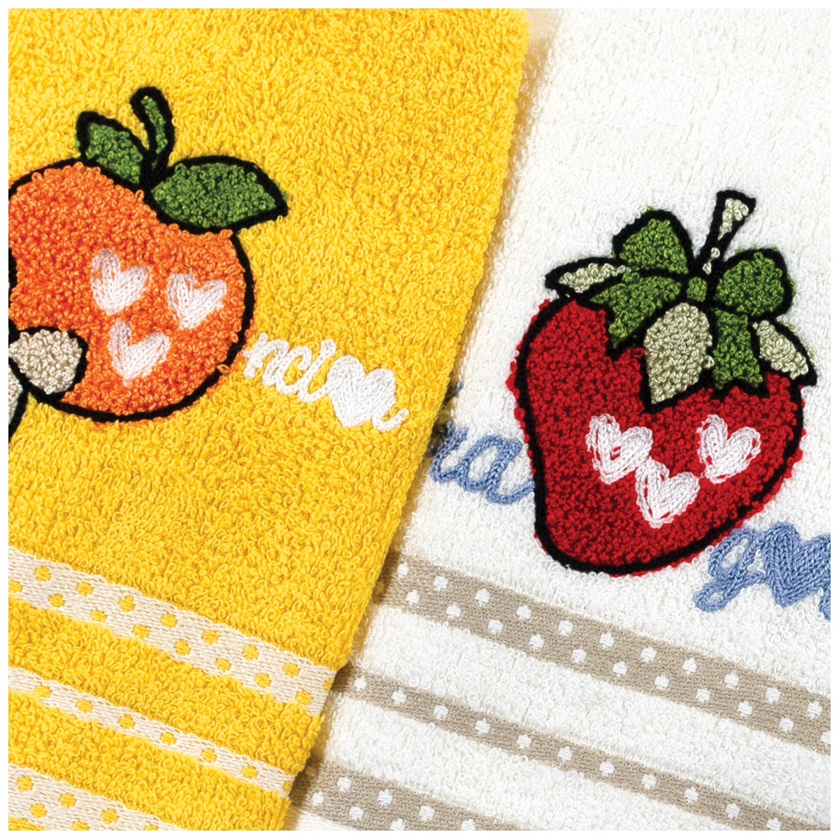 Il set di asciugapiatti in cotone della collezione Vingi Ricami è pensato per valorizzare la cucina con un perfetto equilibrio tra funzionalità quotidiana ed estetica decorativa. Composto da asciugapiatti coordinati, questo set si distingue per i ricami curati a tema frutta e per le delicate fasce decorative che donano un tocco di colore e raffinatezza. Ideali per l’uso quotidiano, questi asciugapiatti garantiscono un’elevata capacità assorbente e una piacevole morbidezza al tatto. Perfetti sia per cucine classiche che moderne, rappresentano anche una soluzione regalo pratica e di gusto.