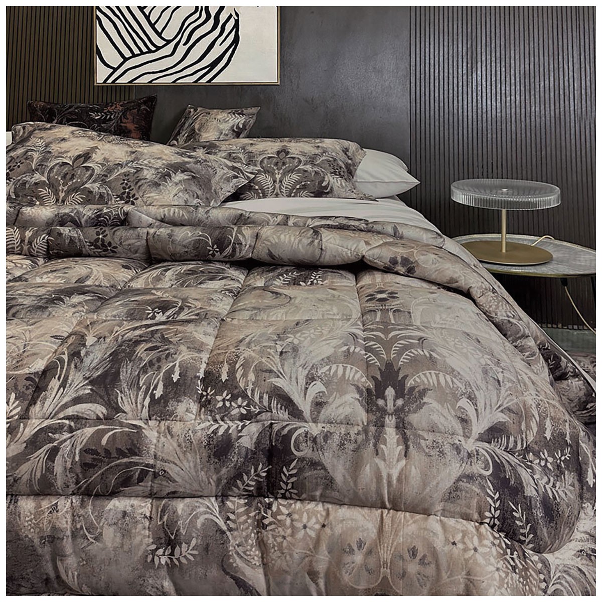 Realizzata in 100% raso di puro cotone 300TC con stampa all over e dal design raffinato, questa trapunta matrimoniale aggiunge un tocco di stile alla tua camera da letto, assicurandoti al contempo un calore avvolgente.