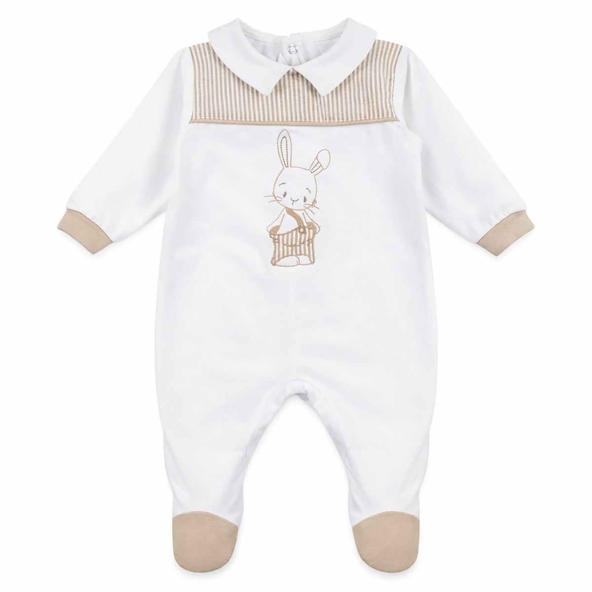Tutina neonato in cotone jersey con colletto e ricamo coniglietto Le Chicche