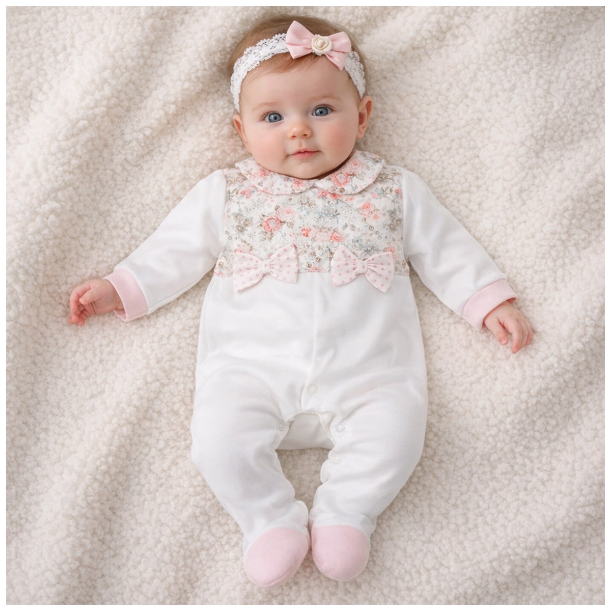 Tutina in cotone jersey con fiocchetti Le Chicche TU7010