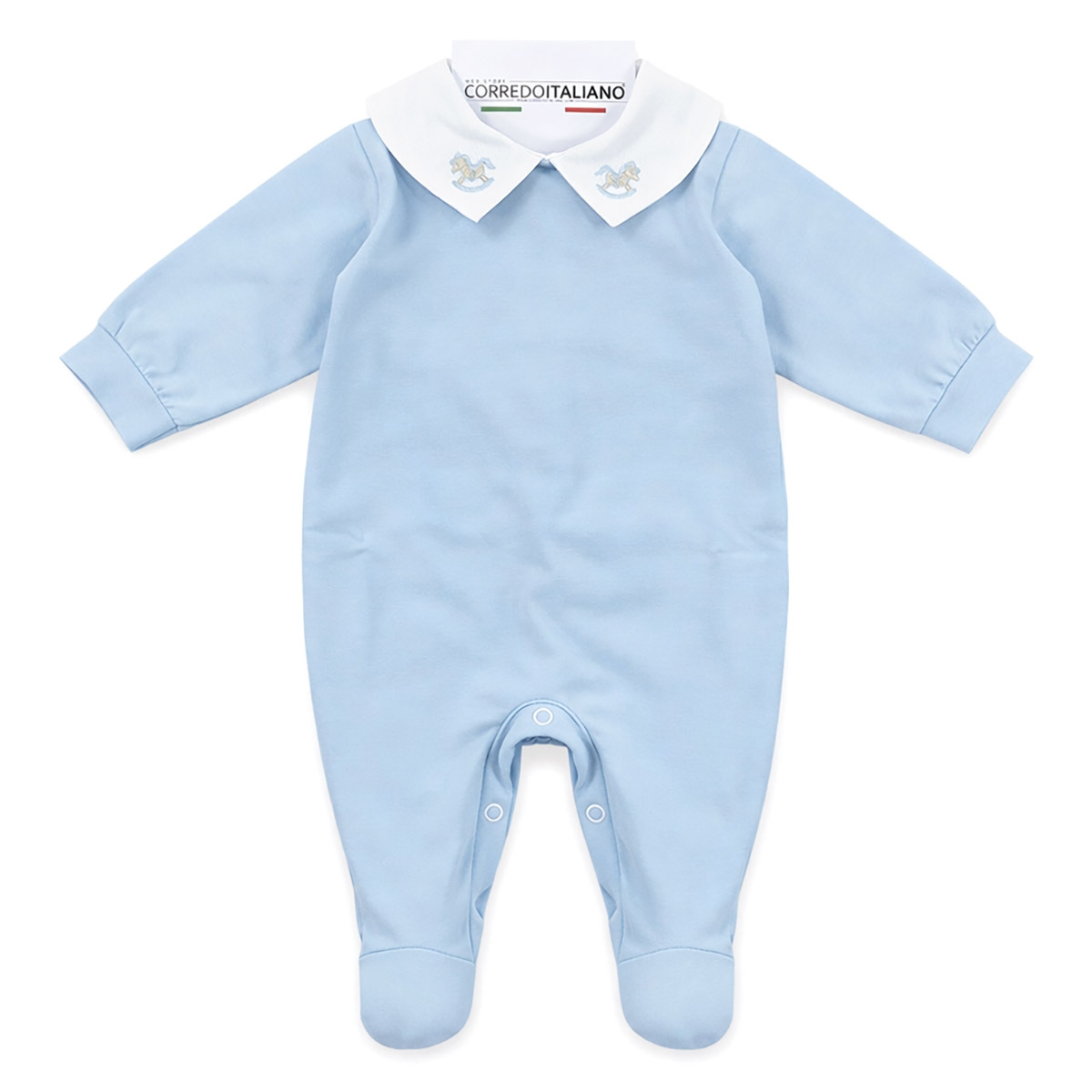 Tutina in cotone jersey con colletto ricamato - CI195AZ - Corredino