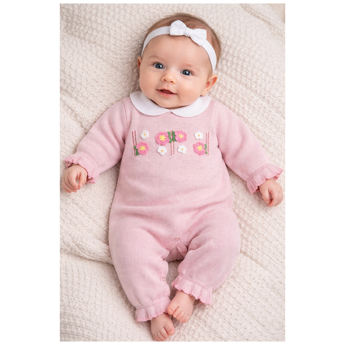 Morbidezza e stile: la tutina in filo tricot Stella per la tua neonata