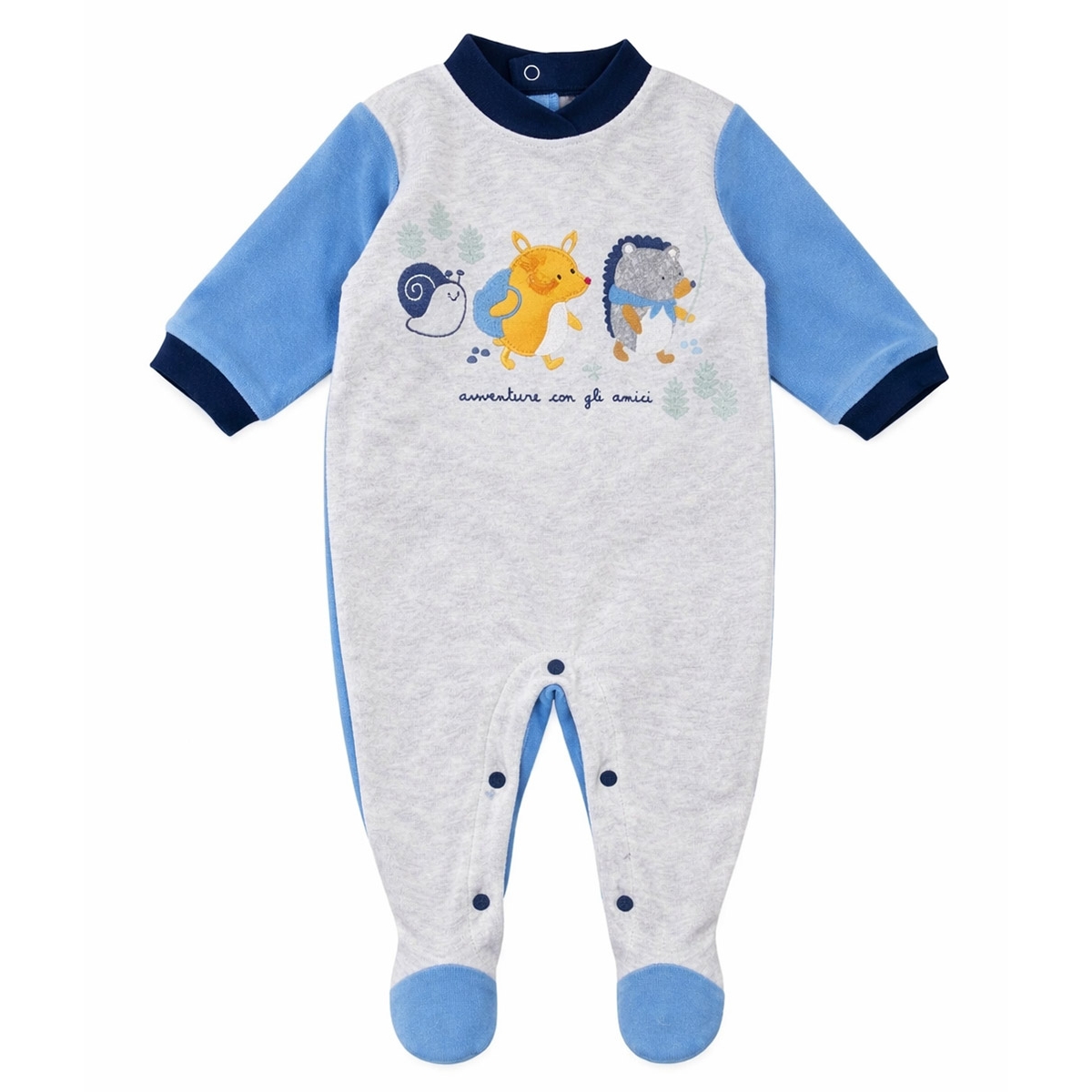 Tutina neonato in ciniglia Ellepi grigio e azzurro con ricamo animaletti