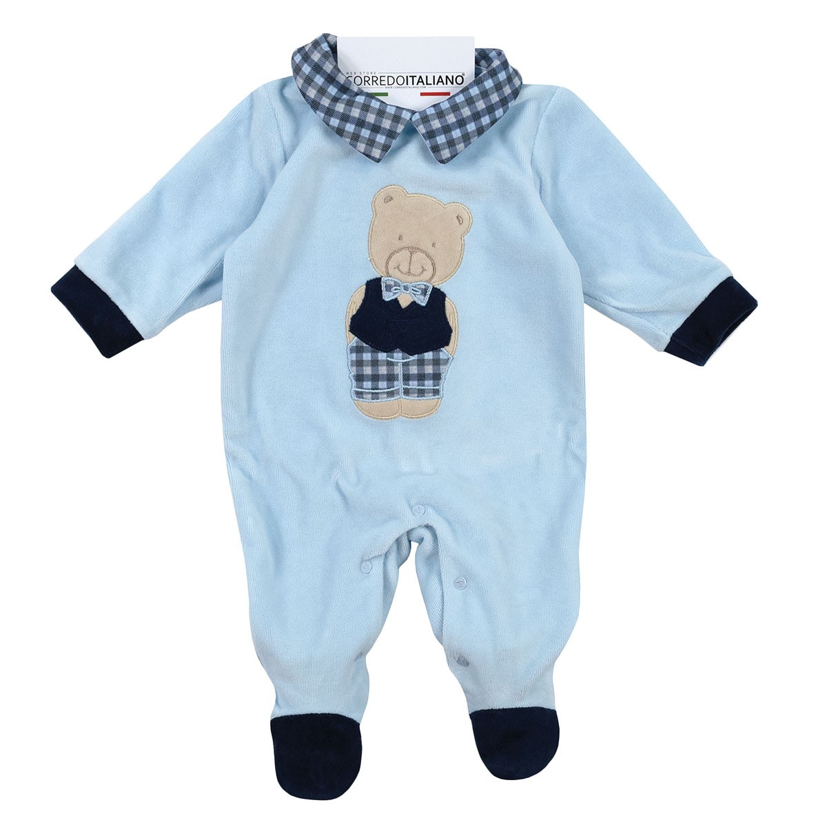 - Modello: Tutina in ciniglia con orsetto ricamato