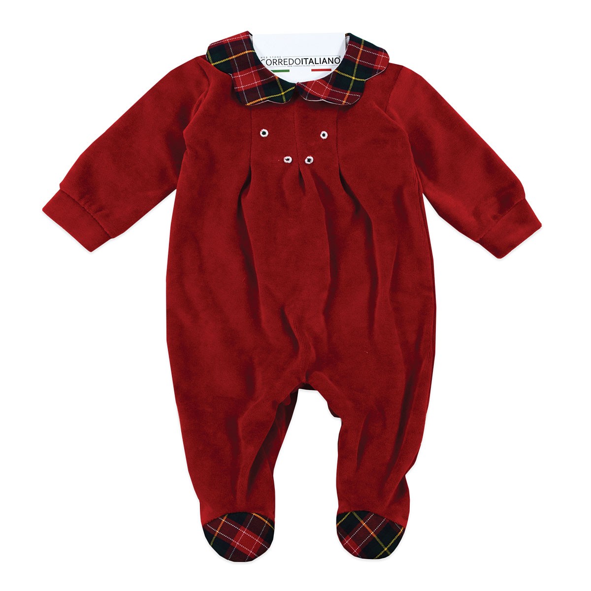 Tutina natalizia in ciniglia con colletto scozzese - Klaiadì K107TC